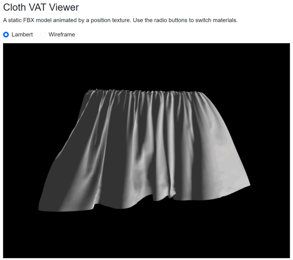 Three.jsではアニメーション再生にも対応しているようですが、布や流体のシミュレーションには直接対応していません。