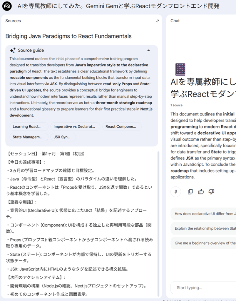 【AI】AIを専属教師にしてみた。Gemini GemやNotebookLMと学ぶReactモダンフロントエンド開発