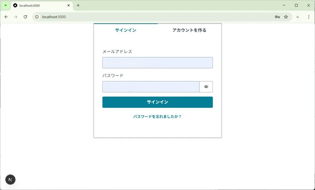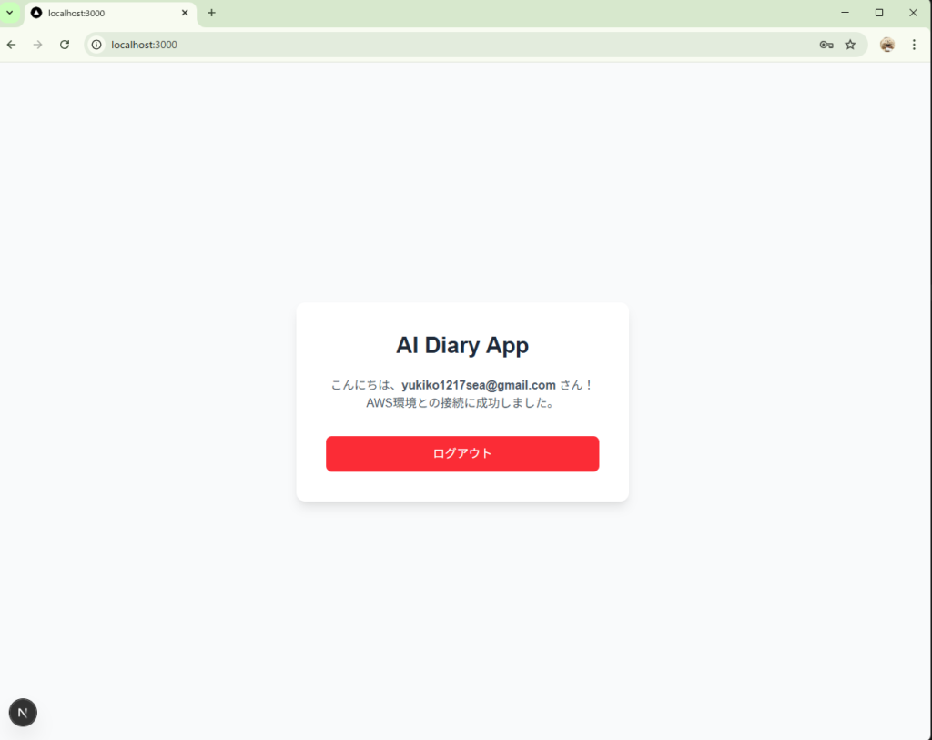 ここまでで、ブラウザで http://localhost:3000 を開くと、すでにAWS Cognitoと連携したログイン画面が表示されるようになりました。