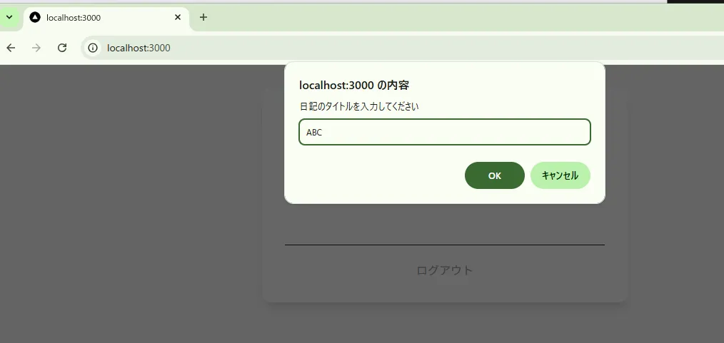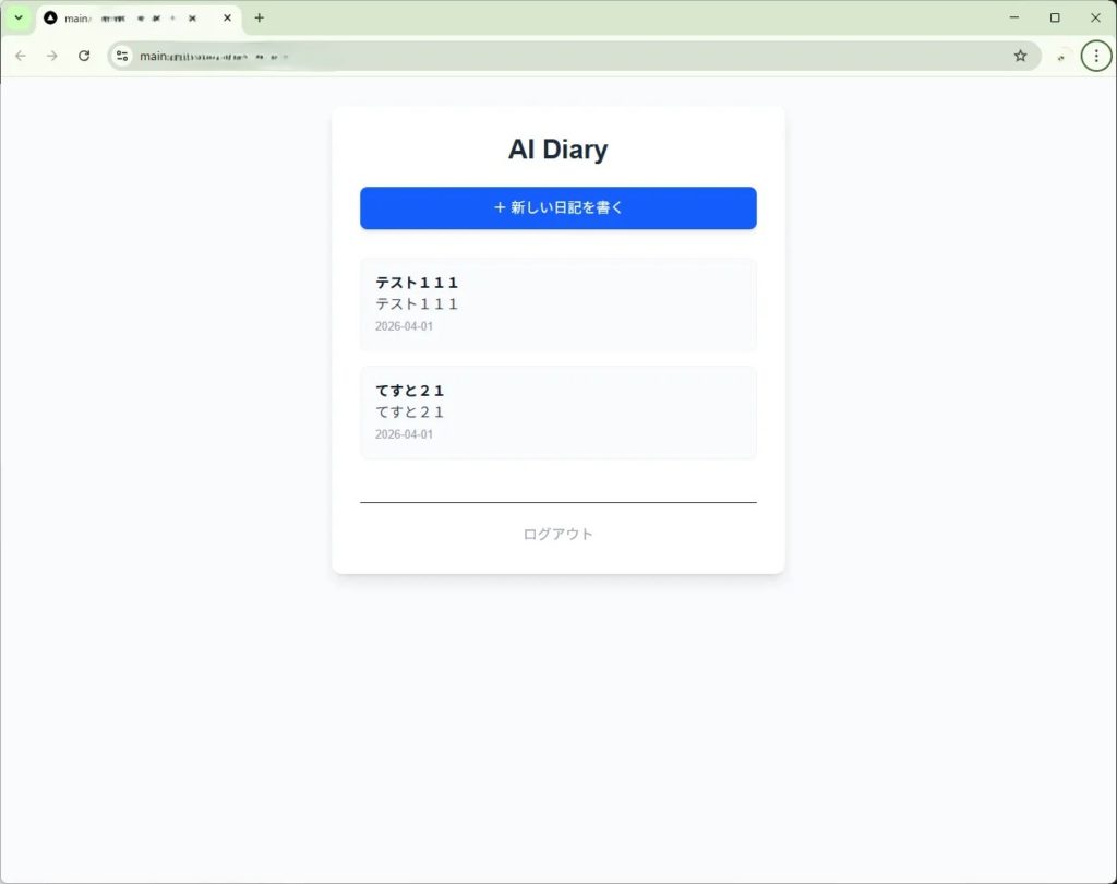 このように、日記アプリへのアクセスにユーザー名とパスワードが要求されるようになります。