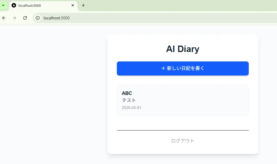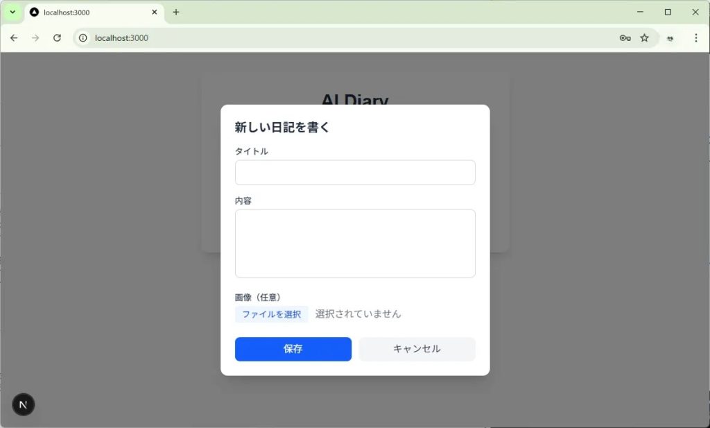 } コードを保存したら、ブラウザで http://localhost:3000 を開きます(もし止まっていたら、ターミナルで npm run dev を打って起動してください)。
