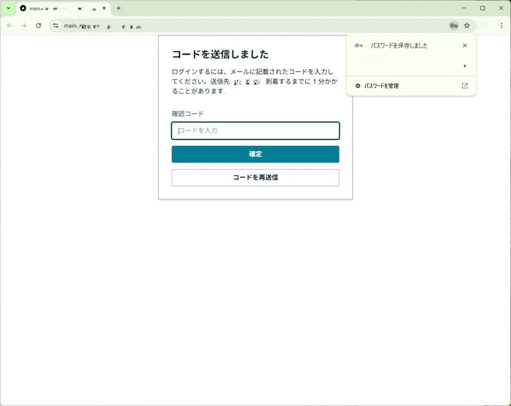 指定したメールアドレスに認証コードが届きます。