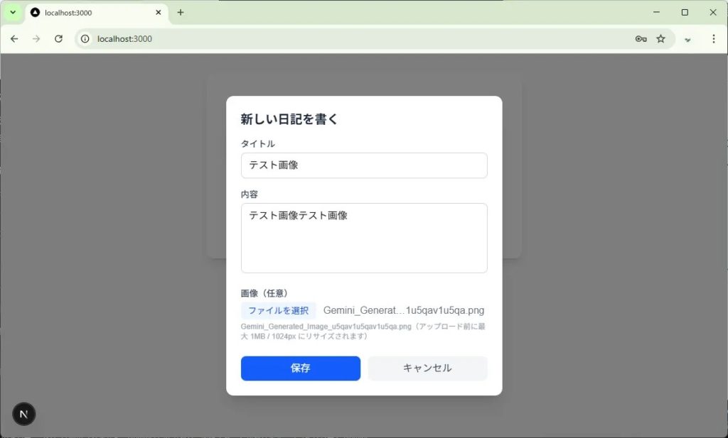 高解像度の写真をそのまま上げると非効率なため、browser-image-compression ライブラリを使用してブラウザ側でリサイズ(最大1MB以下 / 横幅1024px)を行います。