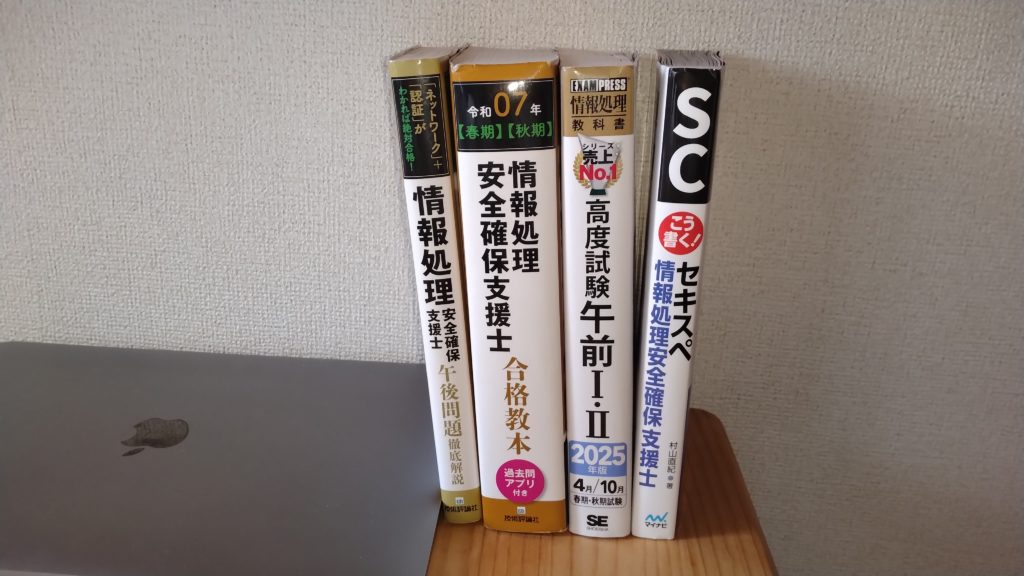 | 情報処理教科書 高度試験午前Ⅰ・Ⅱ 2025年版 | ・午前Ⅰ対策 | ・午前Ⅰ対策としては問題なし ・ただし、過去問道場だけで何とかなったかもしれない |