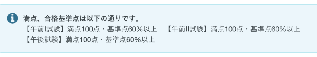 先ほど結果の画像の中で載せましたが、注釈に合格判定が乗っており、判定は60%以上となっています。